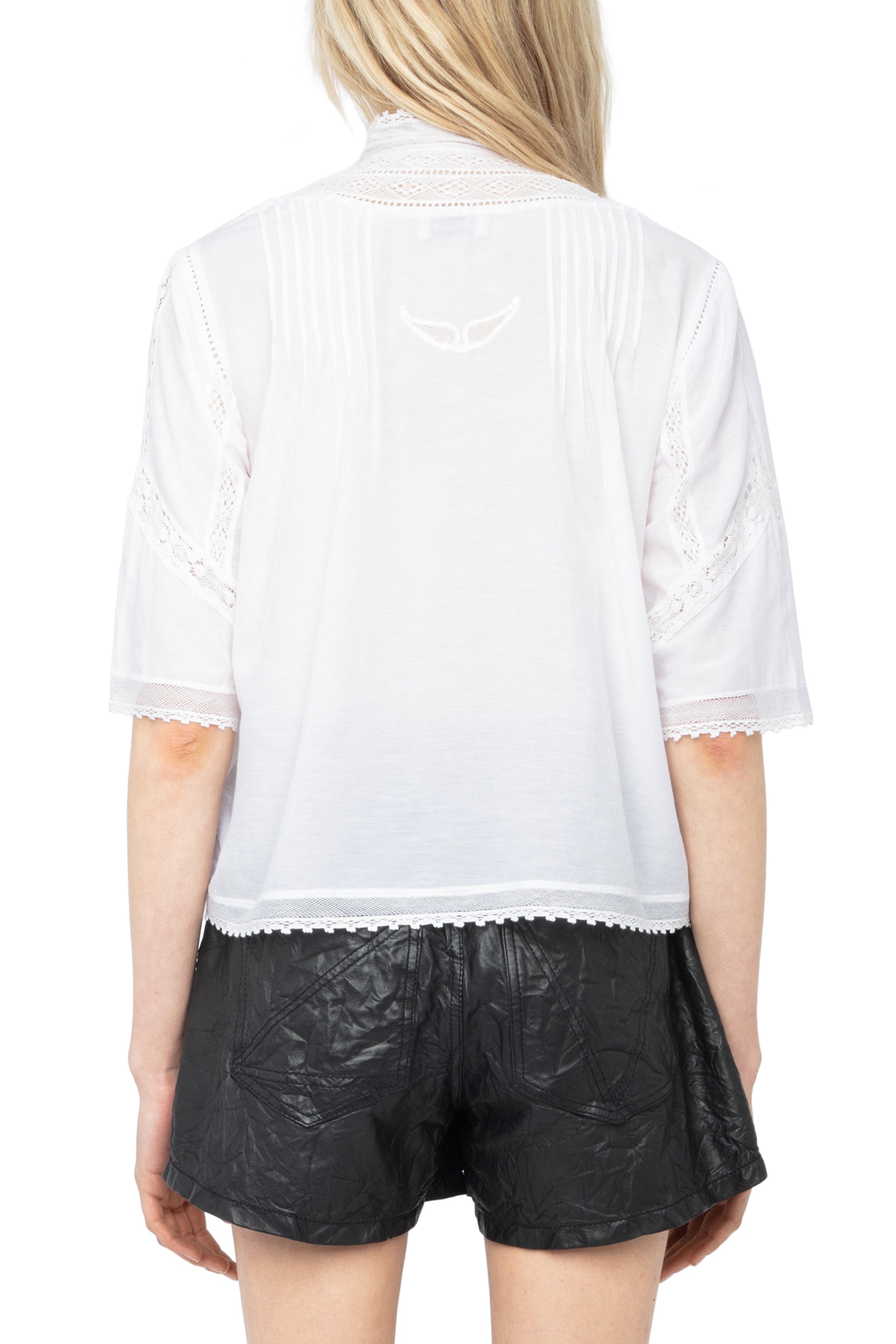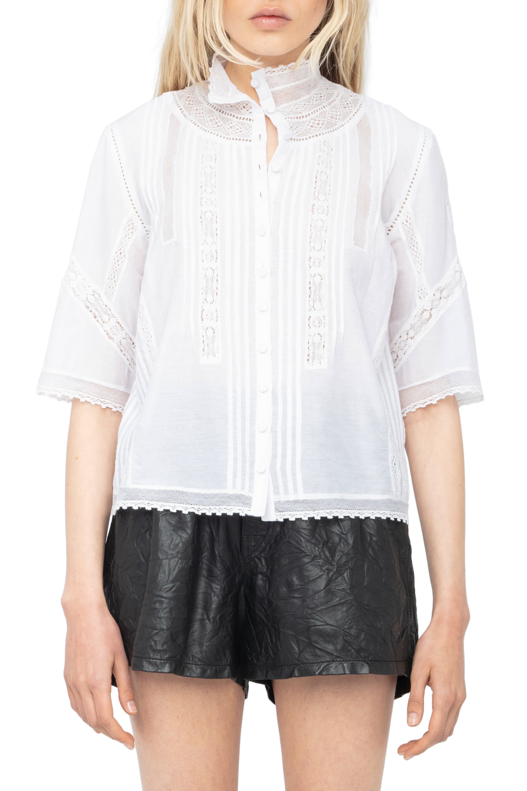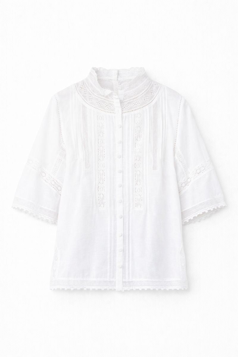 Delicate and effortless, the Tanos Tomboy top blends romantic detailing with a relaxed, modern attitude. Crafted in a lightweight cotton-viscose blend, it features intricate lace inserts, soft pleating, and a subtle stand collar that elevates the classic button-front silhouette. An easy piece that brings feminine texture to everyday styling.