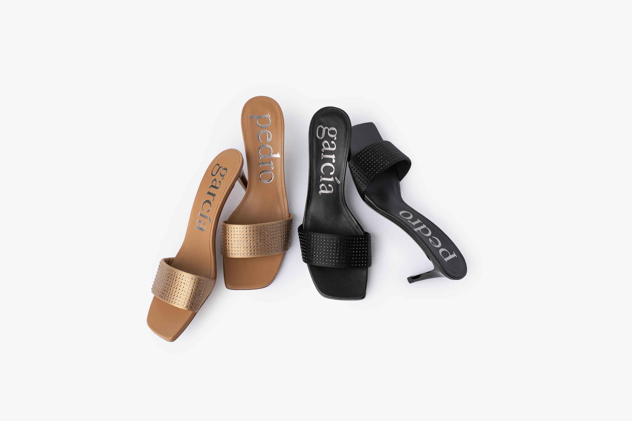 The Pedro Garcia Ilora sandal brings sleek sophistication to warm-weather dressing. Crafted in lustrous Brulée satin, this minimalist mule features a polished scoop strap adorned with micro-studs for a refined touch of shimmer. A slim stiletto-style heel and cushioned footbed balance elegance with comfort, making it an effortless choice for both day and evening looks.