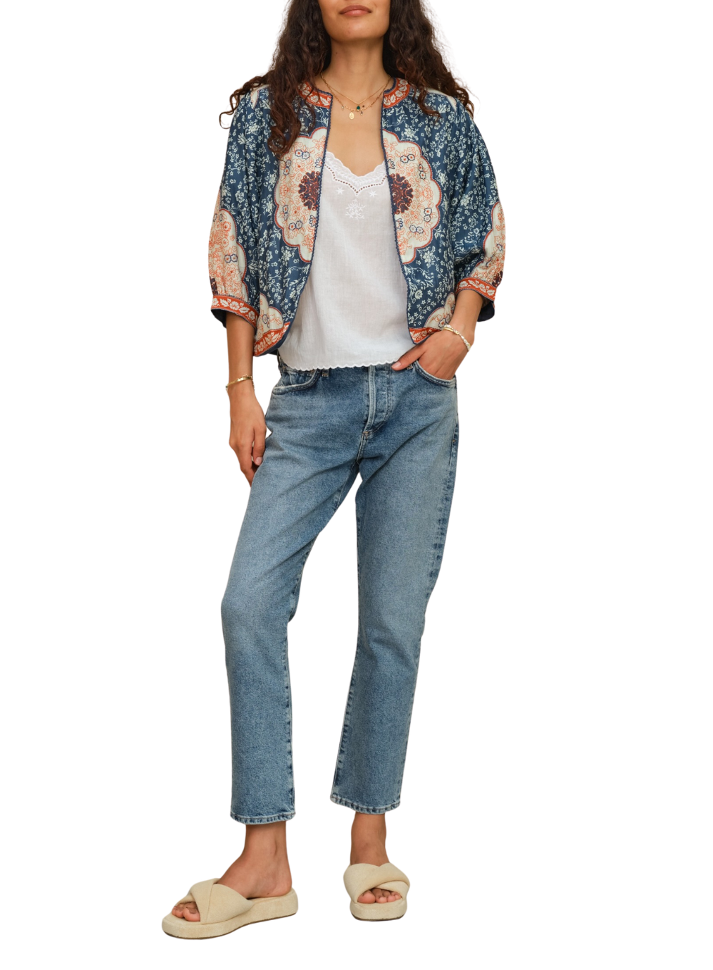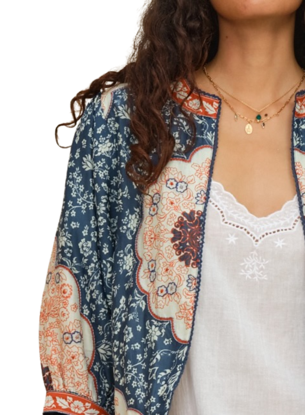 Rich in detail and artisanal charm, the Ursa Print & Embroidered Jacket by M.A.B.E. blends intricate floral prints with delicate embroidery for a striking, bohemian-inspired layer. Designed with a softly structured silhouette and three-quarter sleeves, this lightweight jacket adds effortless character to everyday outfits.