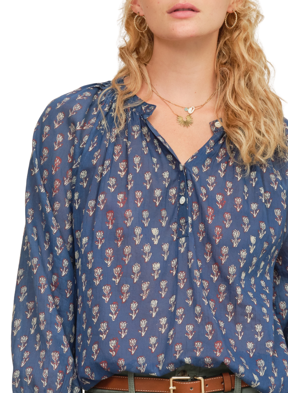 Effortlessly feminine and timeless, the Ari Print Long Sleeve Top by M.A.B.E. showcases delicate floral blockprint detailing on soft cotton. This airy silhouette brings relaxed elegance to everyday dressing, perfect for pairing with denim or tailored separates.