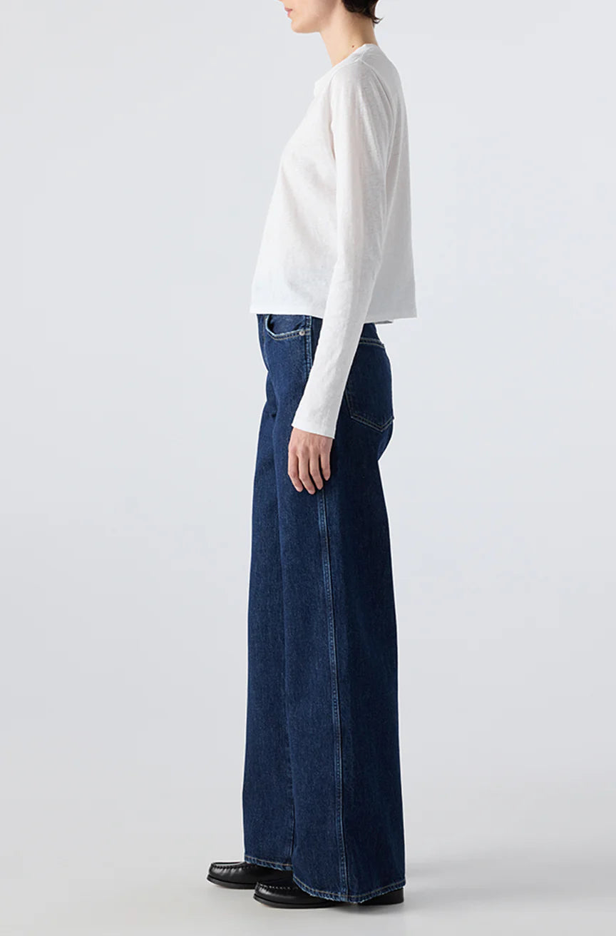 Make a statement in our best-selling high-rise, wide-leg denim—your new everyday essential. Designed with an easy fit through the hip and thigh, this silhouette features a full-length inseam for a leg-lengthening effect. A zip fly closure and clean finish keep the look timeless, while the wide leg adds effortless drama. Pair with everything from crisp shirting to relaxed knits for a go-to uniform with modern edge.