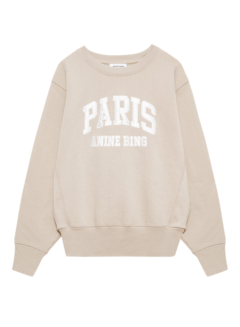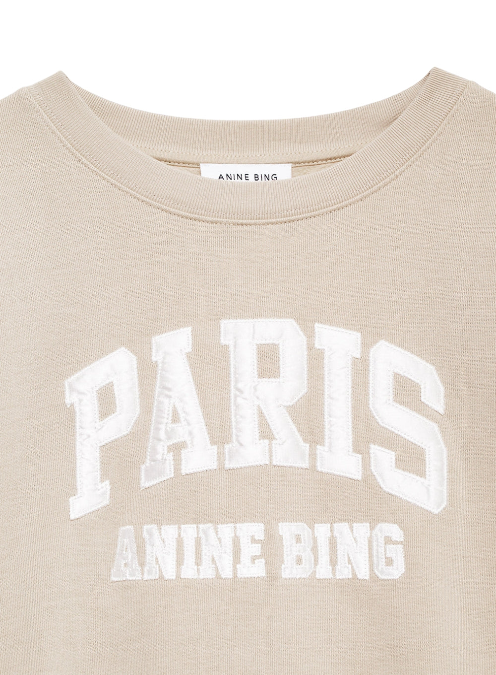 Designed in midweight cotton fleece, the Anine Bing Harry Shrunken Sweatshirt Paris is a collegiate-inspired essential with an elevated, everyday feel. This crewneck pullover features a shrunken fit with ribbed paneling at the sides, plus ribbed trim at the collar, cuffs, and hem for a clean finish. Complete with an ivory PARIS ANINE BING satin patch at the chest, it’s the perfect throw-on layer to pair with denim, trousers, or leggings for effortless off-duty style.