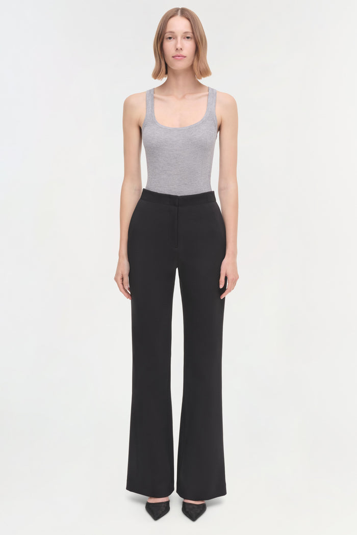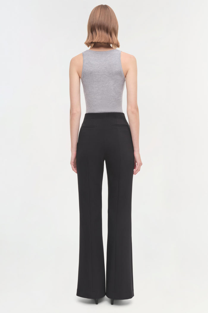 The Kenna Trouser in Black delivers sleek tailoring with a modern edge. Crafted in twill suiting, this streamlined pant features a flattering flare that elevates any formal or professional wardrobe.