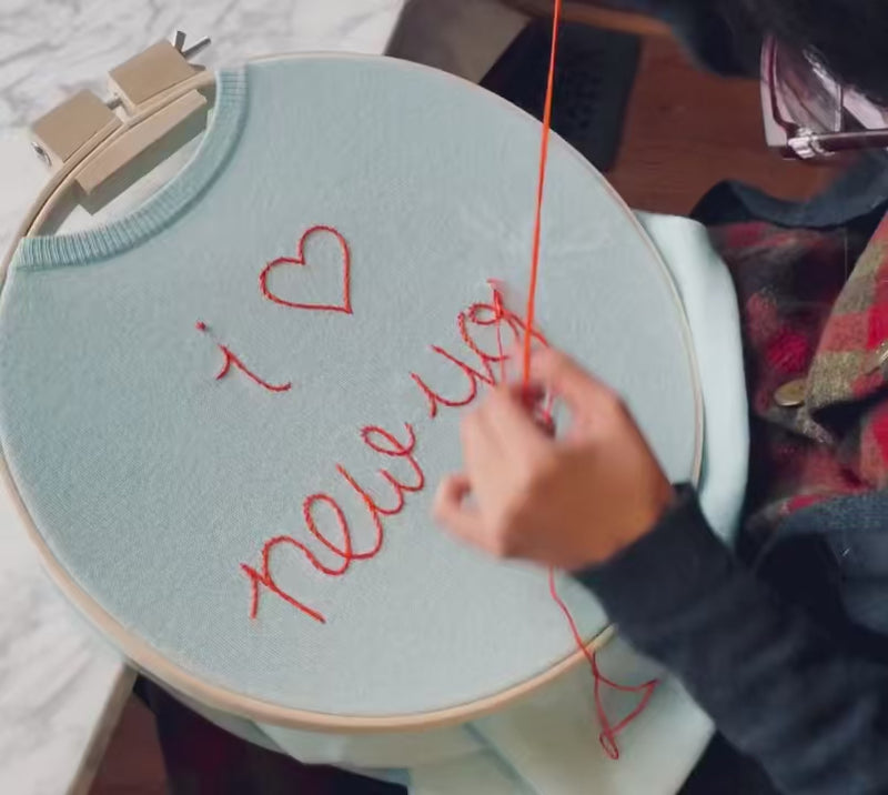 Make it personal with a custom Lingua Franca cashmere sweater—stitched just for you in NYC. Choose one of our signature phrases or create your own to make it uniquely yours. Each piece is crafted from 100% sustainably sourced cashmere and hand-embroidered to order for a truly one-of-a-kind finish.
