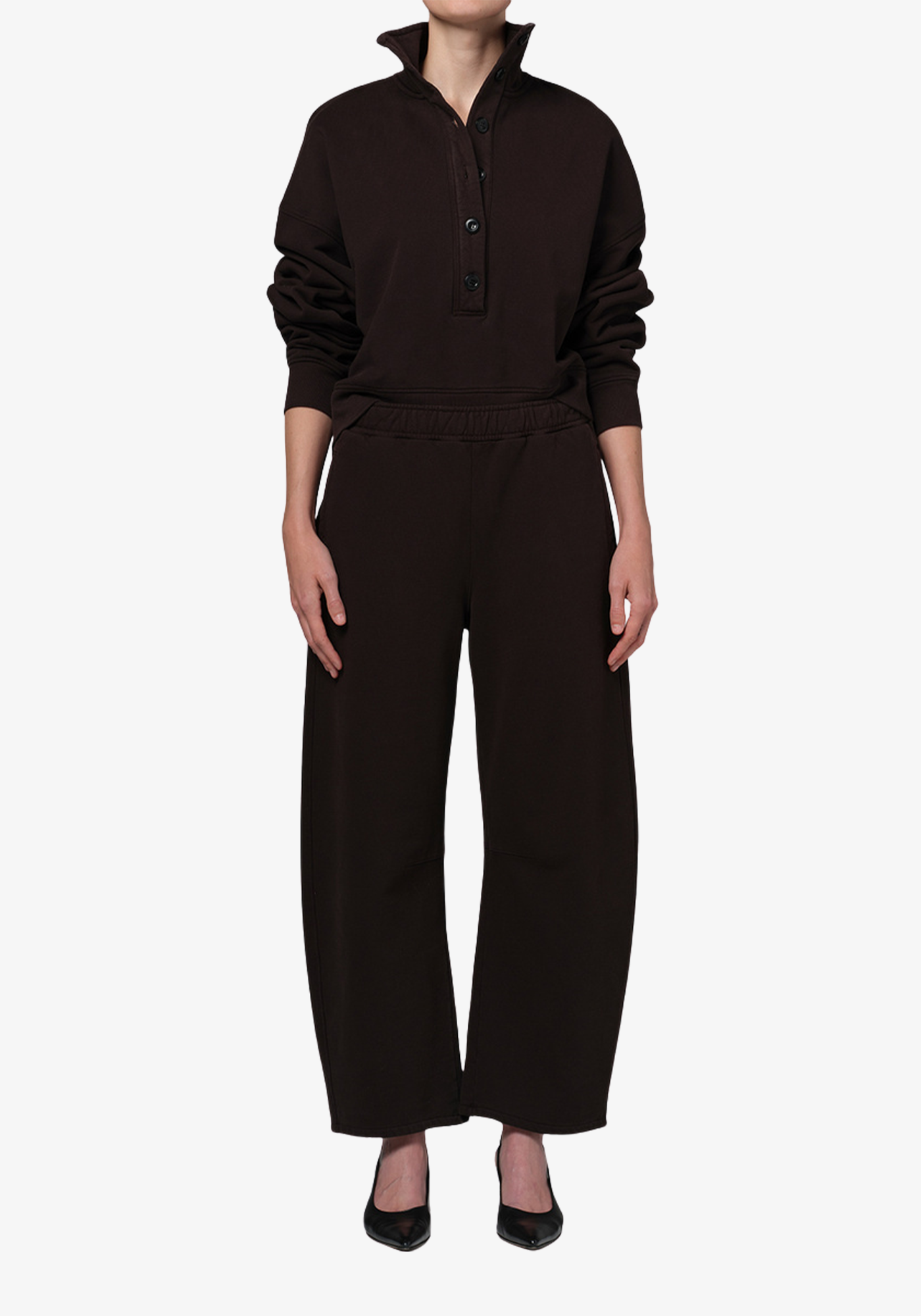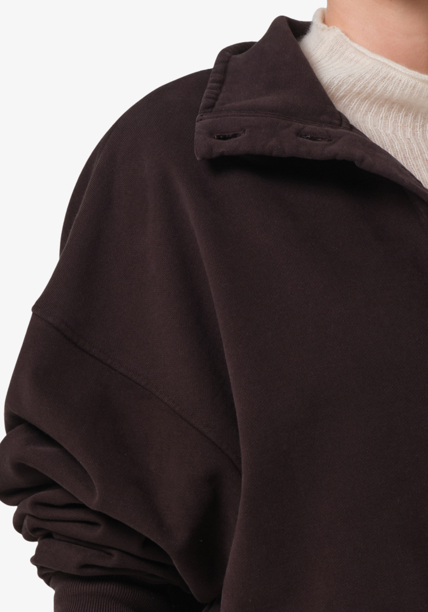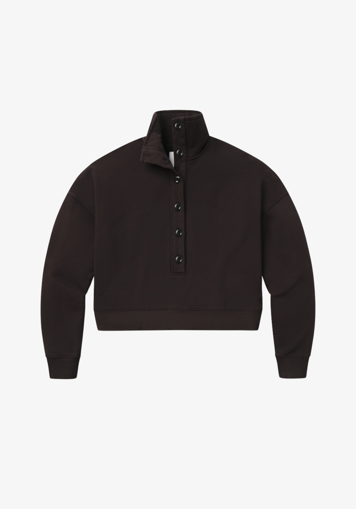 The Mirelle Funnel Neck is a modern update to the classic sweatshirt. Crafted from soft brushed fleece with a plush, cozy feel, it’s designed with a high funnel neckline and button closure for a polished yet relaxed look. With its loose, boxy silhouette, this piece is perfect for off-duty layering or elevated lounging.