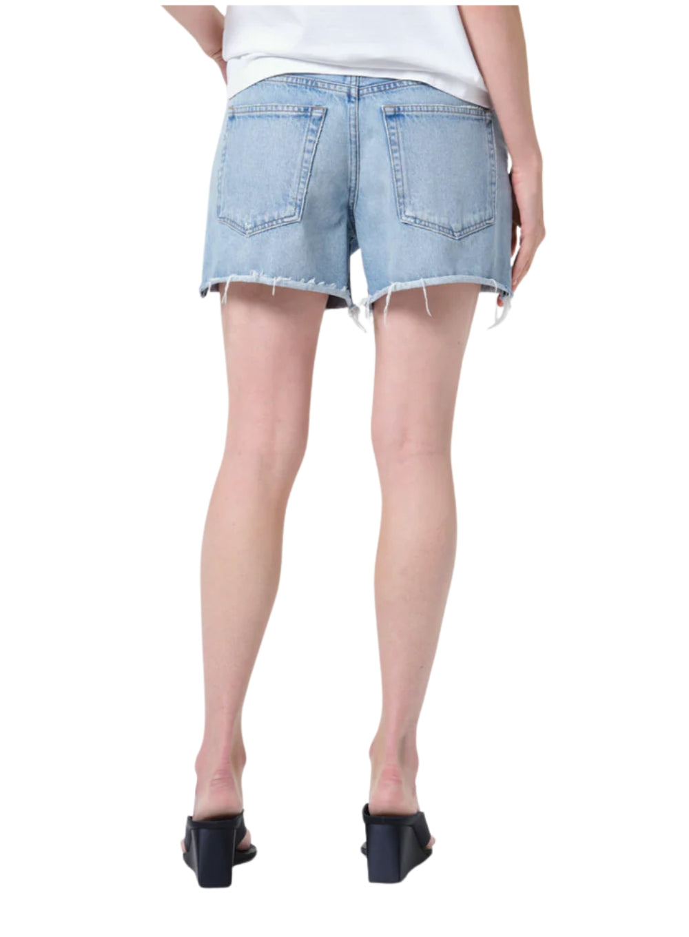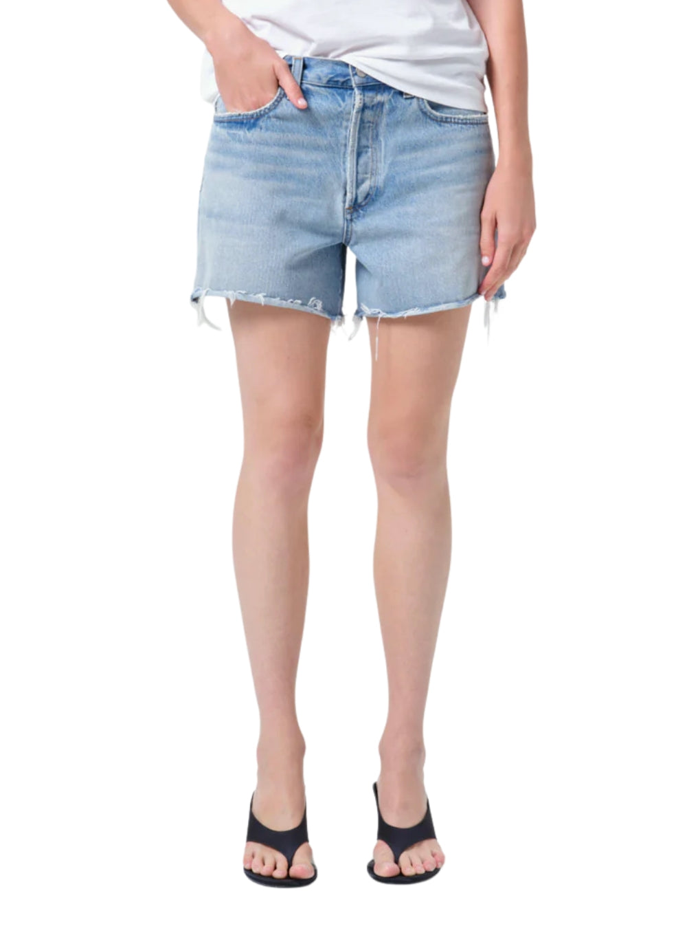 The Nye Vintage Short is the quintessential relaxed denim short — steeped in effortless cool with that just-right lived-in feel. Cut from vintage-inspired rigid denim, it sits at the natural waist and is meant to be worn low on the hips for a laid-back, effortlessly cool look. This style falls into a relaxed, slightly slouchy leg with a raw-edge hem that softens with wear. Clean five-pocket construction and subtle fading give these shorts an authentic lived-in look, making them a go-to for weekends, warm days, and everything in between.