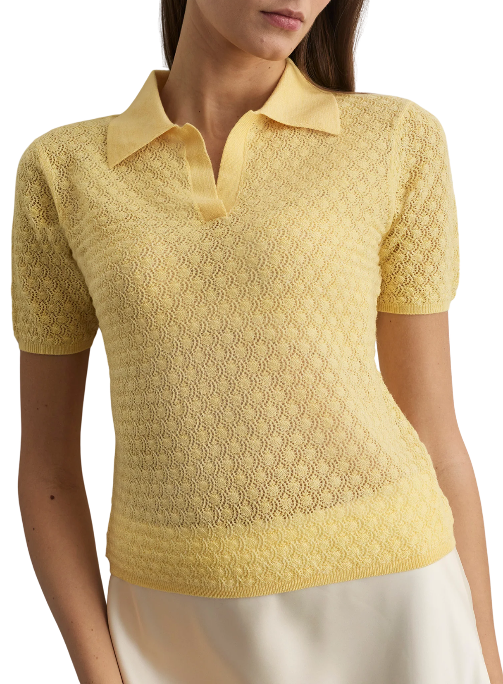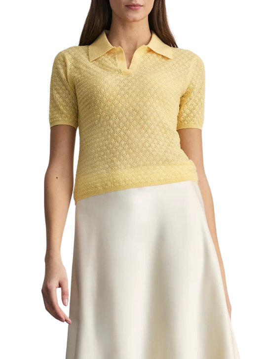 A refined essential with a romantic twist, the Camilla Pointelle Knit Top by Tanya Taylor reimagines the classic polo in a delicate, feminine silhouette. Crafted from extra-fine merino wool, this lightweight knit features intricate pointelle detailing throughout, offering subtle texture and breathable comfort with an elevated finish.