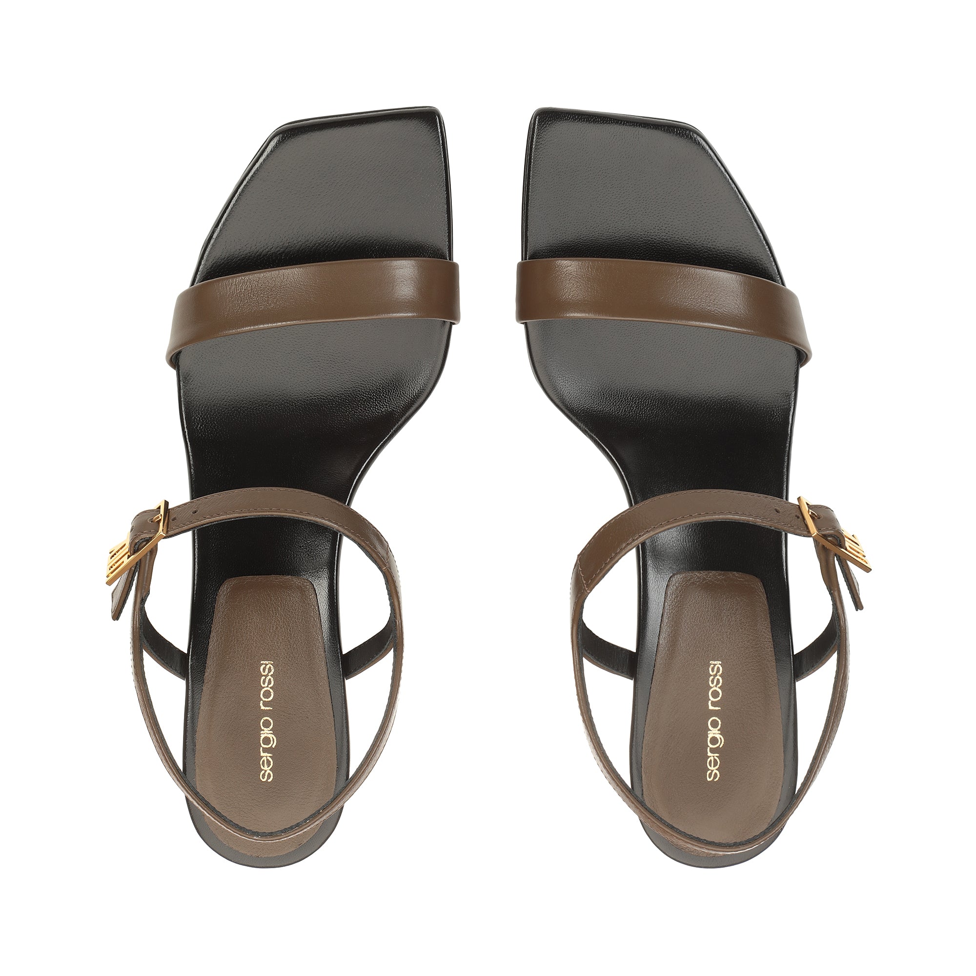 The Sergio Rossi Sandal in Walnut offers understated elegance with a modern edge. Crafted from smooth leather, this minimal two-strap sandal features a sleek square toe, a low sculpted 40 mm heel, and a refined gold-tone buckle for subtle shine. Versatile and sophisticated, it’s the perfect warm-weather staple to pair with dresses, tailoring, or denim.