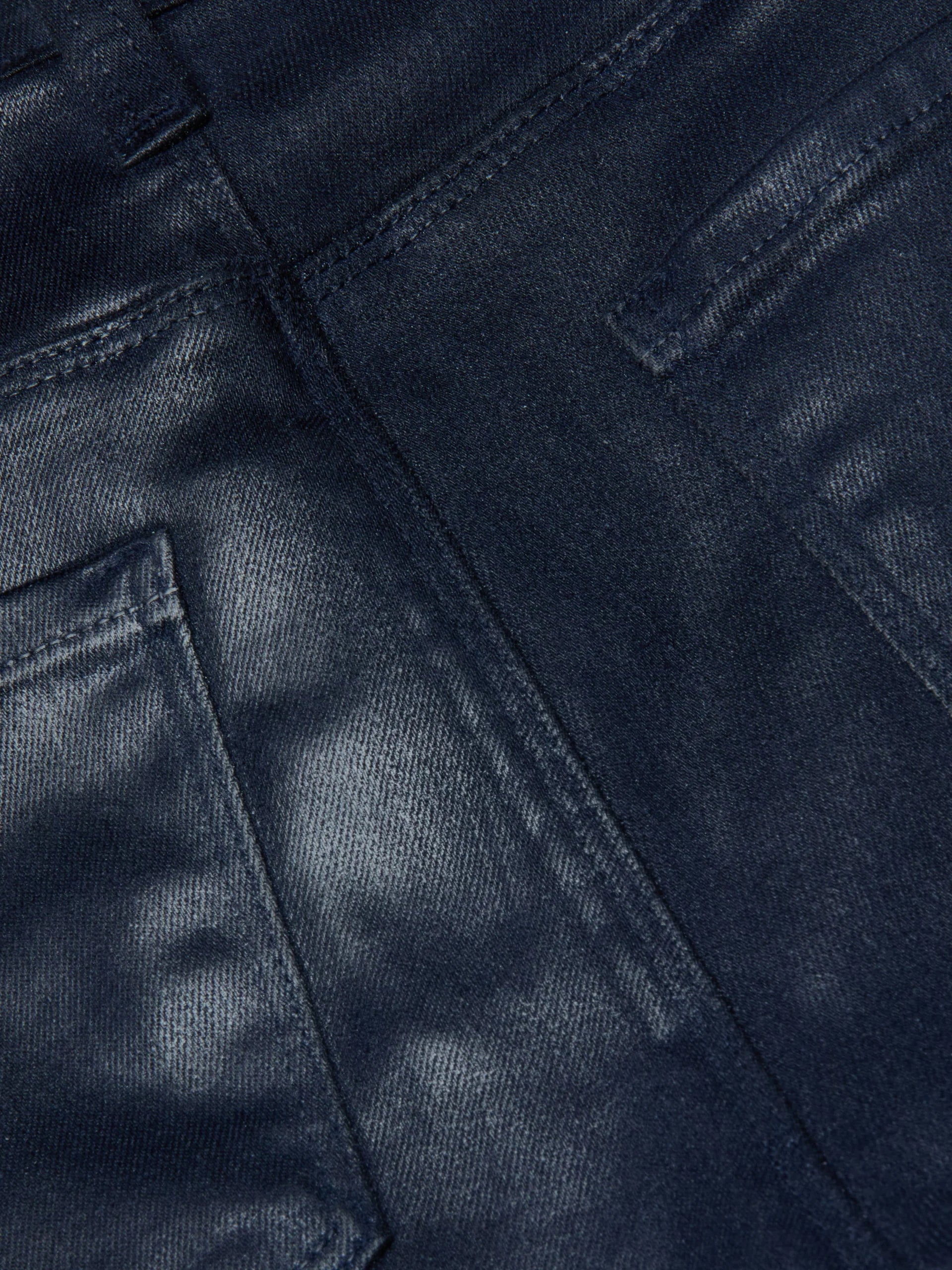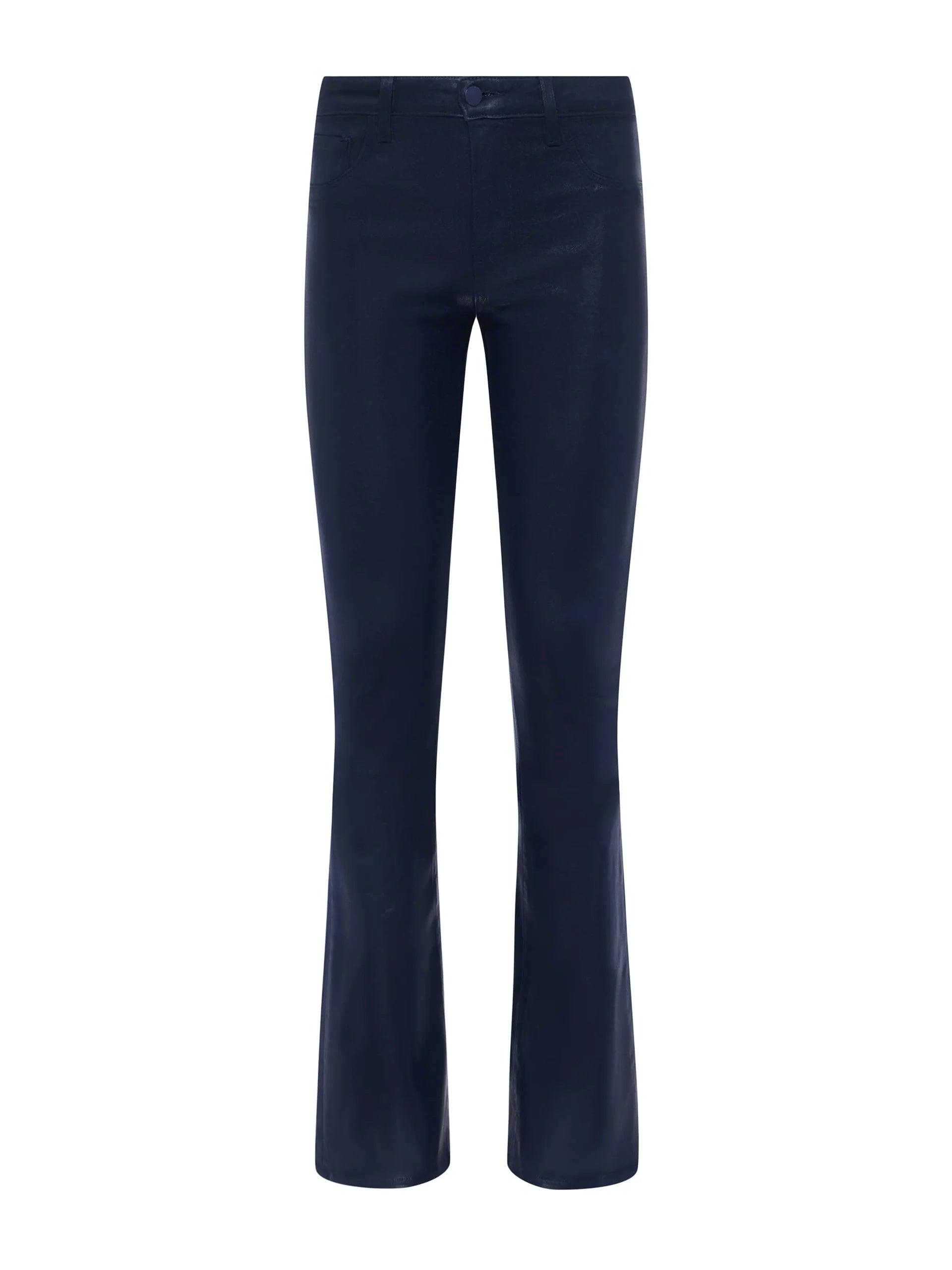 A classic high-rise jean in a coated premium stretch denim in true black. Subtly lustrous style features a contoured waistband that fits securely just above the natural waist, while the design hugs from hip to knee before releasing into a slim bootcut hem. The high-recovery denim style is finished with a classic five-pocket construction and front zip fly closure.