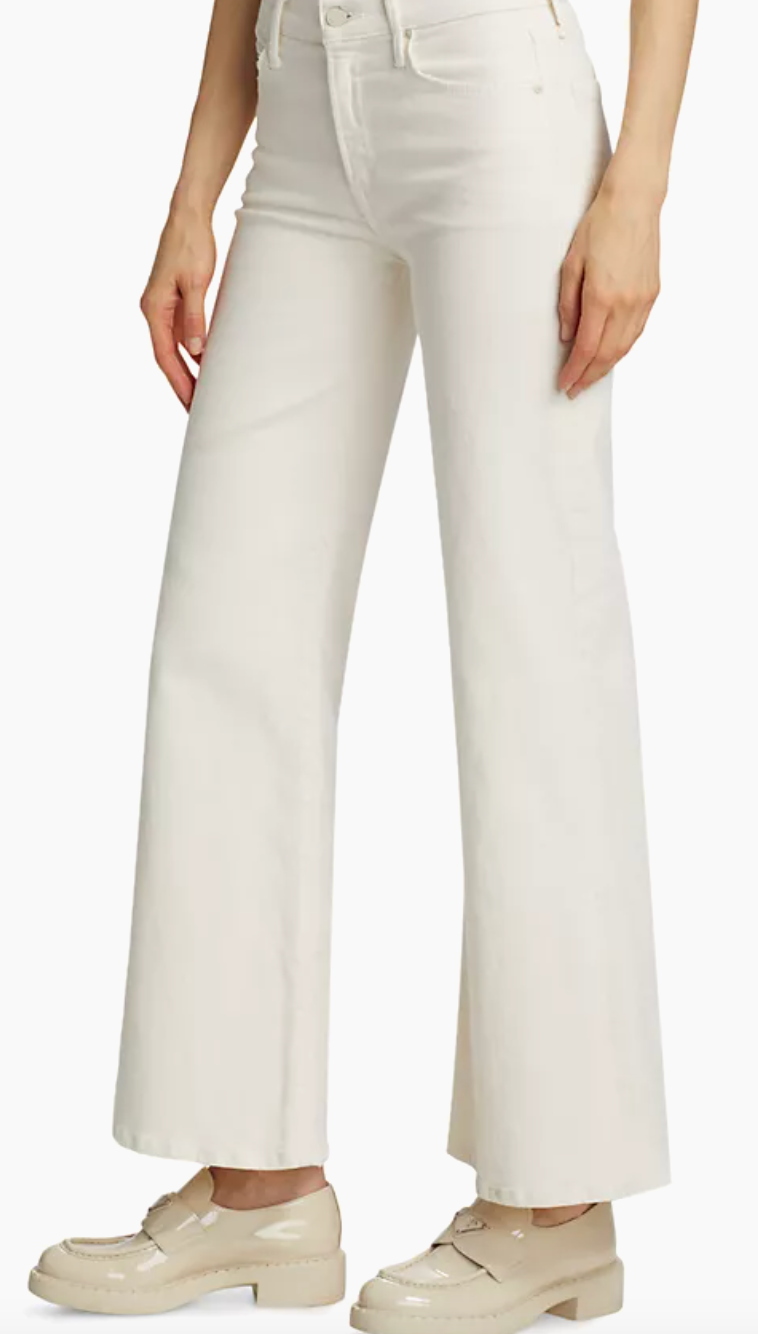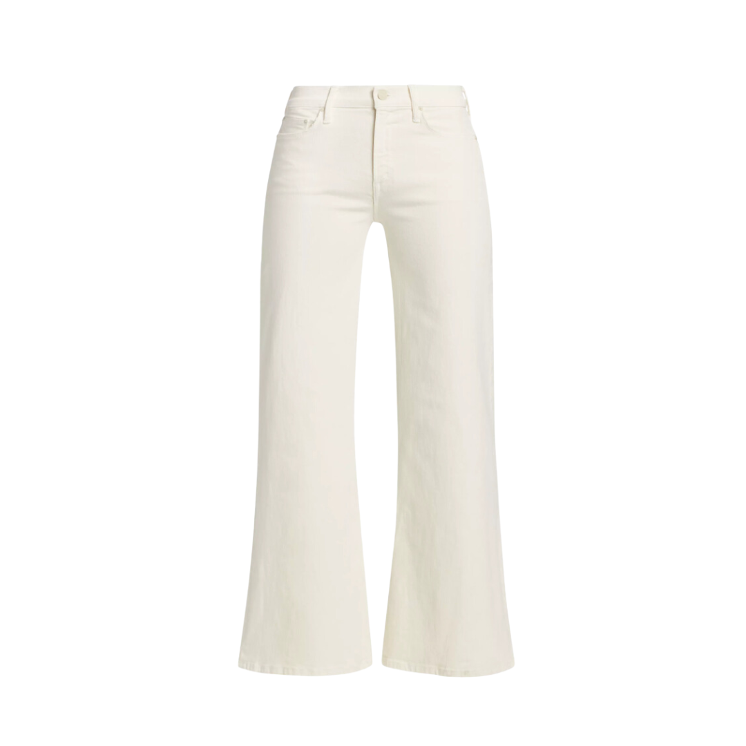 High-rise pants with a flared, wide leg and 31-inch inseam with a clean hem. Cut from comfortable stretch fabric, Cream Puffs is an off-white color with tonal hardware. Pair with a knit sweater or t-shirt for a casual yet stylish approach.